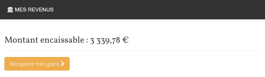 Pour récupérer le montant encaissable, rendez-vous dans votre espace utilisateur.
