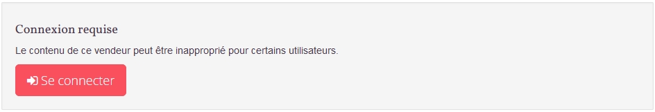 Lorsqu'une Boutique est soumise à une limite d'âge, les utilisateurs doivent être connectés et avoir 18 ans ou plus pour accéder à son contenu (visualiser l'image de couverture d'un produit, ajouter le produit au panier, etc.).
